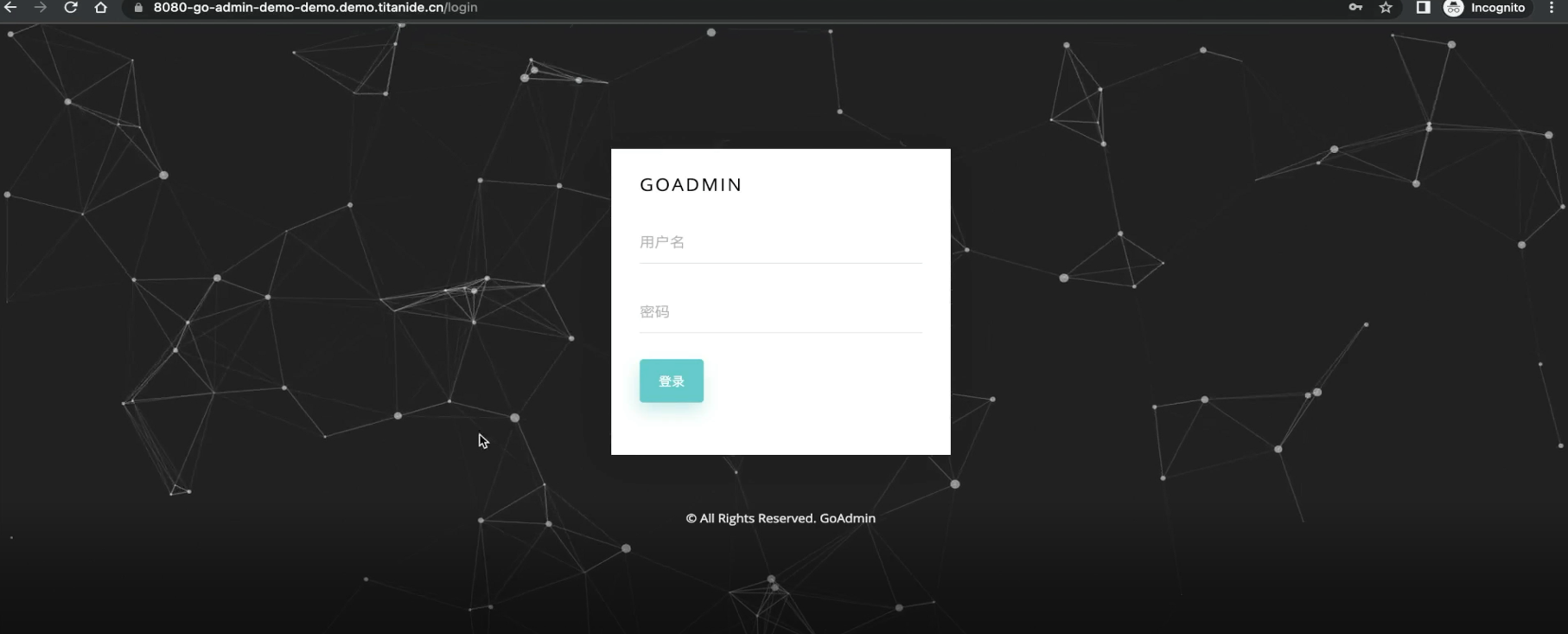 以上是我通过 [TitanIDE] 定制了开箱即用的 Go Admin 开发环境模板,然后使用这个模板一键创建 Go Admin 的开发环境,在短短的 1 分钟内,除了创建项目填写一个项目名称,剩下的就是静静地等待 1 分钟,您无需做其他任何操作,一个完整的 Go Admin 开发环境就呈现在您的眼前了。欲知 [TitanIDE] 的模板是如何开箱即用的,或者您也想定制属于您的开发环境模板,敬请期待下次的分享。